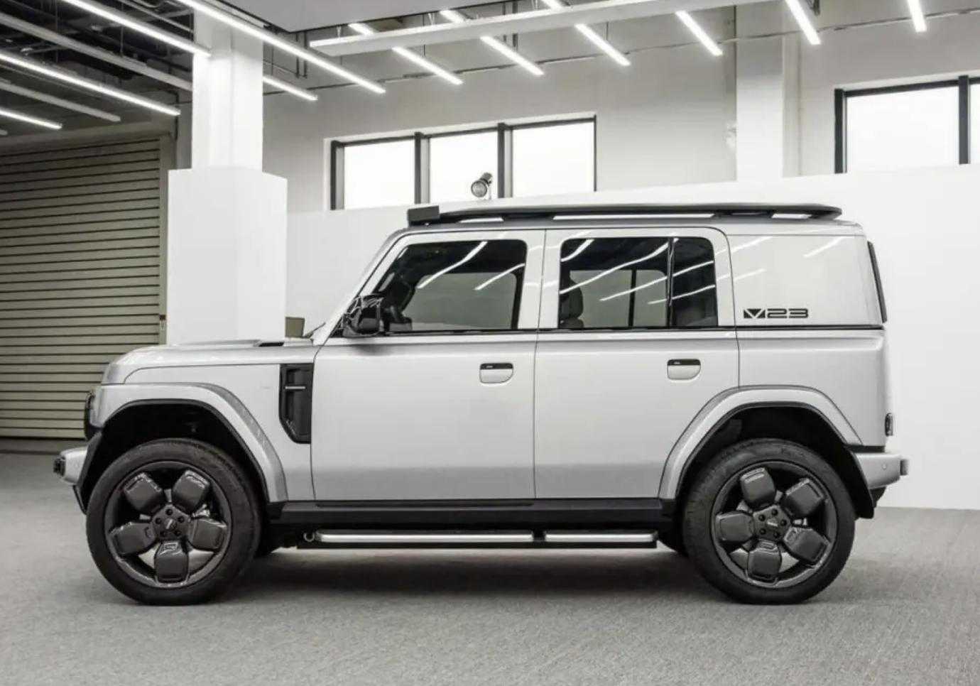 车身采用硬派越野车常见的方盒子造型,前翼子板还带有路虎卫士同款的饰板,并把品牌标识“i”融入其中,外扩的轮眉搭配大尺寸五辐式轮毂,观感还是不错的,但没有配备AT胎就差点意思了。另外,新车还配备了固定式侧踏板。