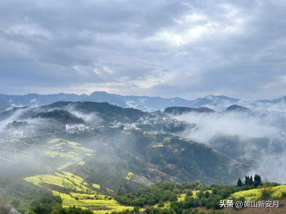 走进坡山村,一条画有三色彩条的沥青盘山公路通达该村,村口几处停车场内都停满了本市和长三角地区来的大巴和小车。公路下方近万亩递次盛开的油菜花海、一簇簇粉红色的桃花与长出嫩芽的茶树在云雾缠绕中忽隐忽现,如梦如幻,美不胜收。