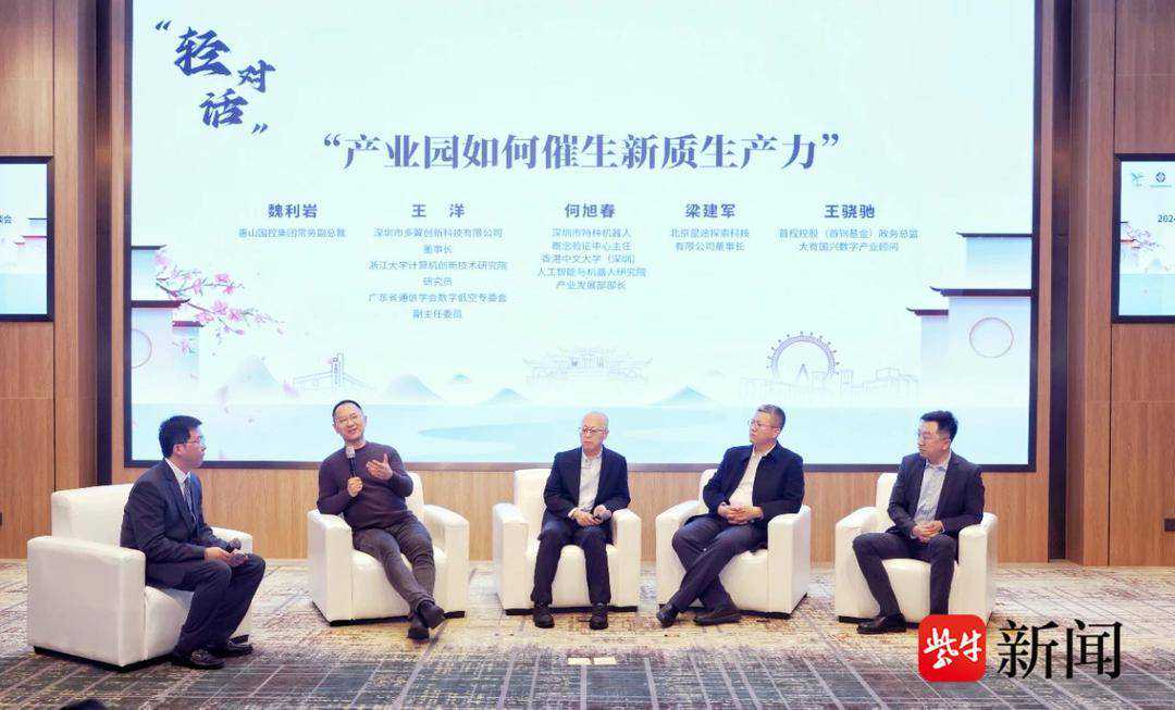 在“轻对话”环节,深圳市多翼创新科技有限公司董事长王洋,深圳市特种机器人概念验证中心主任何旭春,北京星途探索科技有限公司董事长梁建军,首程控股有限公司政务总监、大有国兴产业发展顾问王骁驰等以“产业园如何催生新质生产力”为主题,分别从商业航天、低空经济、机器人产业及产业园区开发运营4个方面进行深入解读,并分享经验。