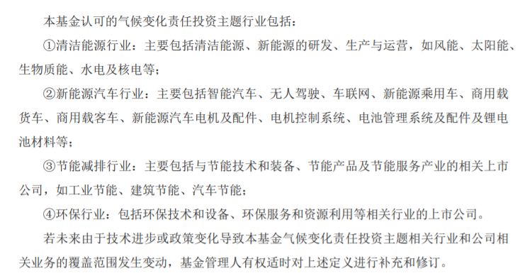 (可以理解为该基金涵盖了几个行业主题基金:环保、低碳、新能源)
