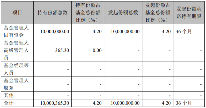另外,这是一只发起式基金,2020-12-30成立,公司发起份额1000万,基金经理365万,现在的规模还比较小,亿,亿,合计3.81亿。
