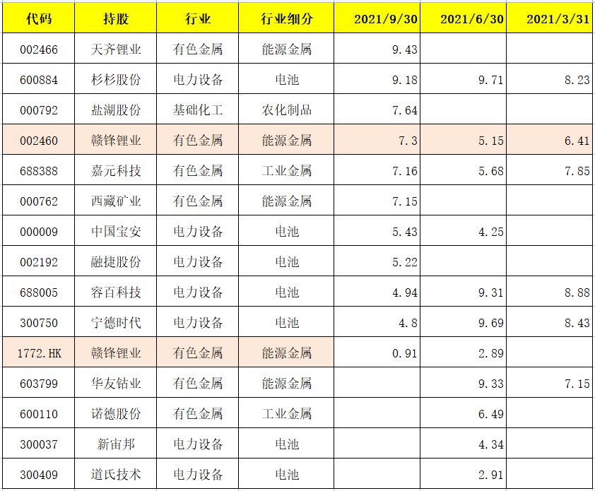 赣锋锂业在A股,港股都持有,合计8.21%,整体TOP3