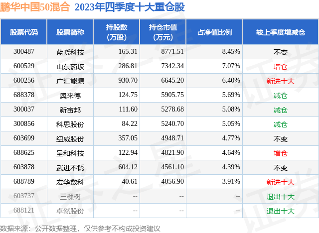 重仓武进不锈的前十大公募基金请见下表:
