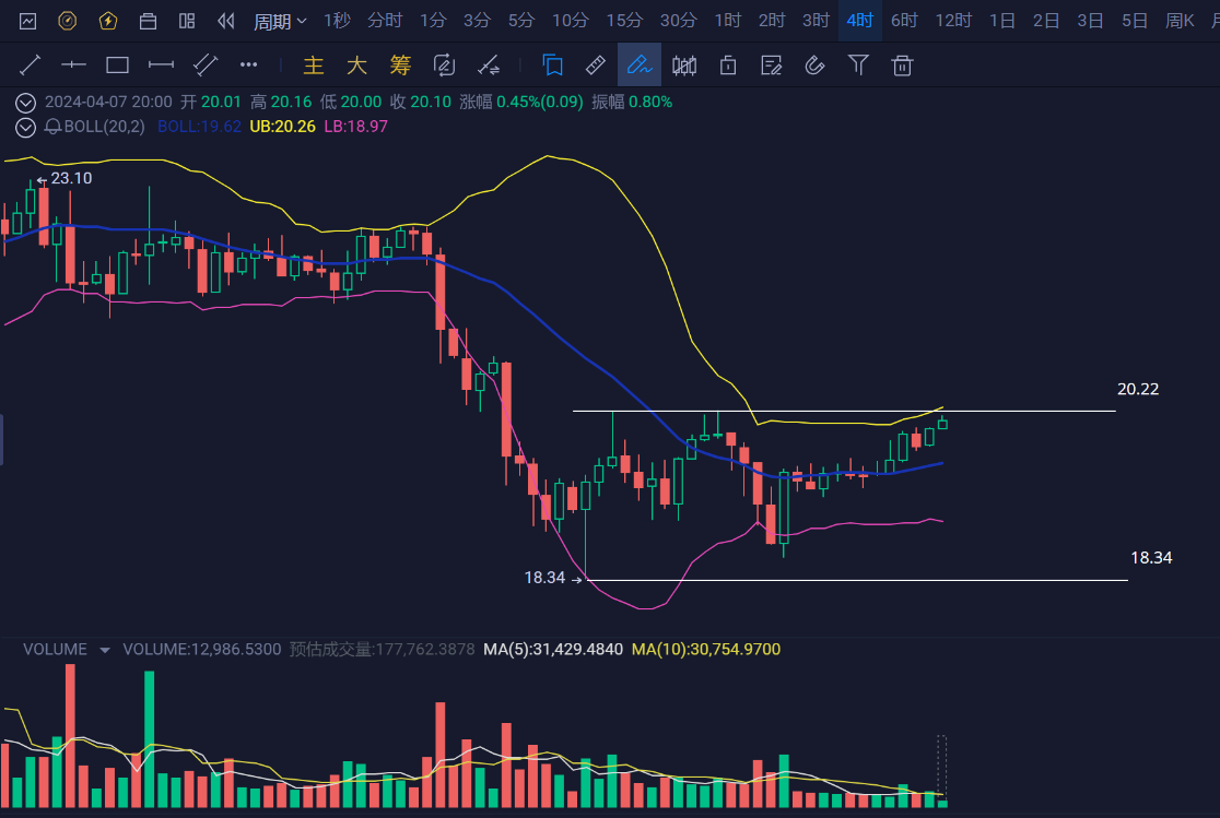 ENS四小时短线一旦突破,后续就将迎来一波短线的趋势行情,所以目前就等待突破信号,相信很快就会出现。