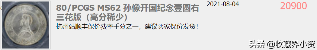 左右三花版在17年、18年的时候,盒子币交易很少,行情在六七百左右,PCGS相对高分地在一千大几而已,19年P盒破两千了,到了2000年AU的P盒破五千也常有,MS的破万很容易了,然后一直到今年行情还是很好!