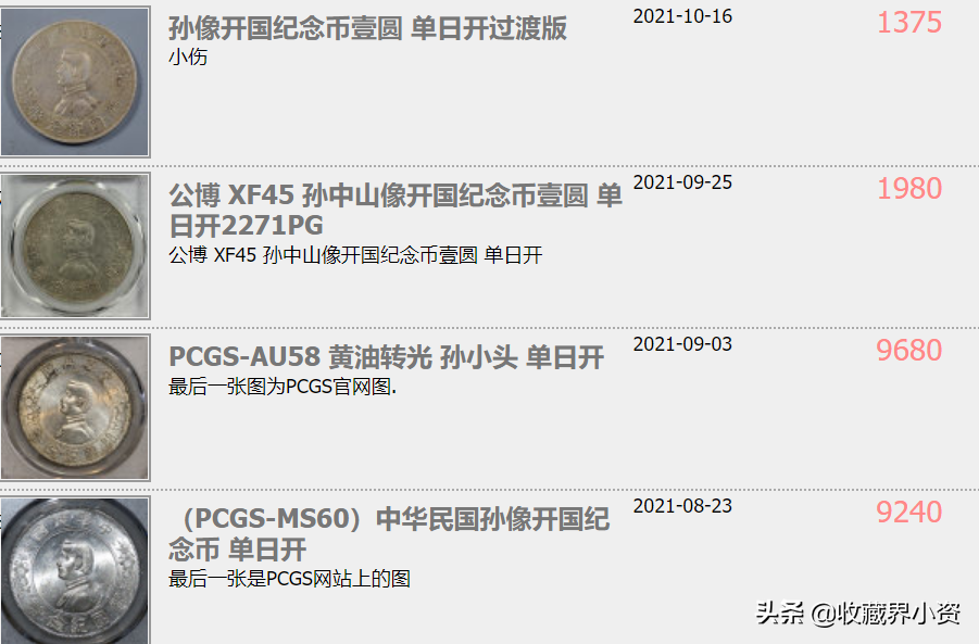 大家好,上一章给大家整理了孙像开国纪念币上五星和下五星的版别特征和收藏行情,上五星与下五星都是值得收藏的也是泉友们追捧的品类,收藏价值大到可以换个总裁车,普品换个五菱MINI也是没问题的;