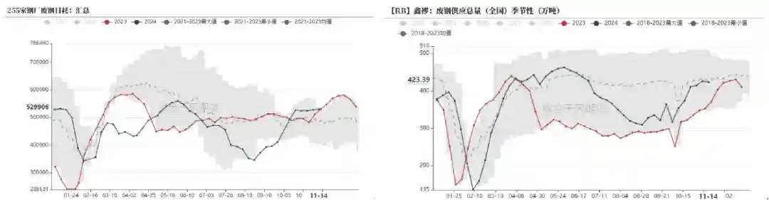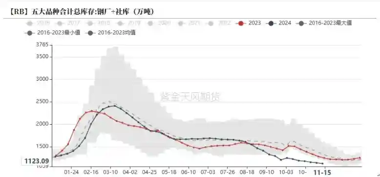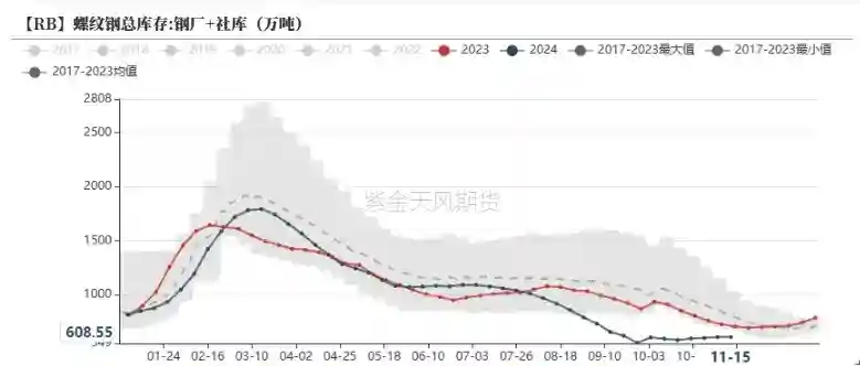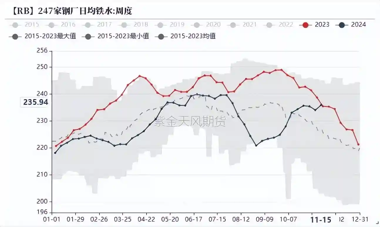 截至2024年11月18日,日均生铁产量为235.94万吨,环比上行1.88万吨,接近去年同期水平。