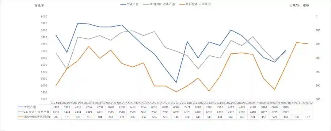 高炉检修边际环比减少