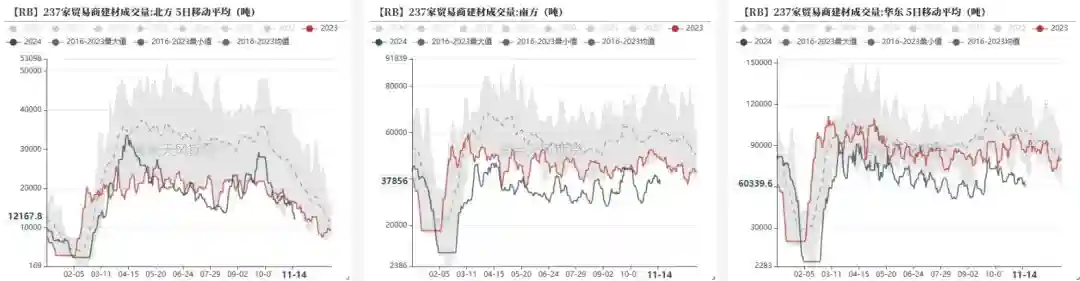 分地区来看,截至11月14日,华东地区建材成交量为6.03万吨;华北地区为1.2万吨;华南地区为3.79万吨。