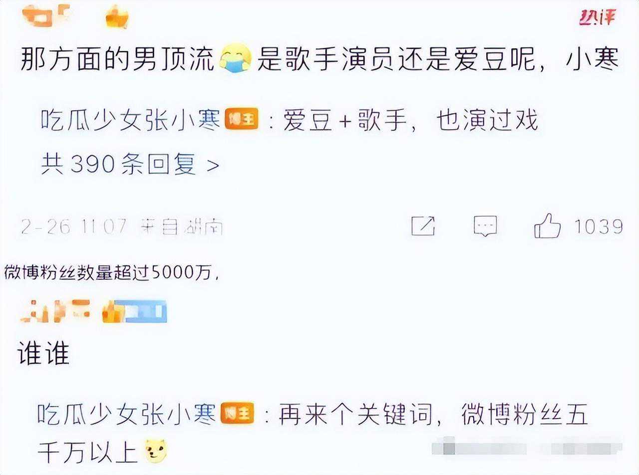 据悉,张小寒声称自己掌握了某男顶流的大瓜,而这位男顶流不仅是一位歌手,还涉足演艺圈,微博粉丝数更是超过5000万。