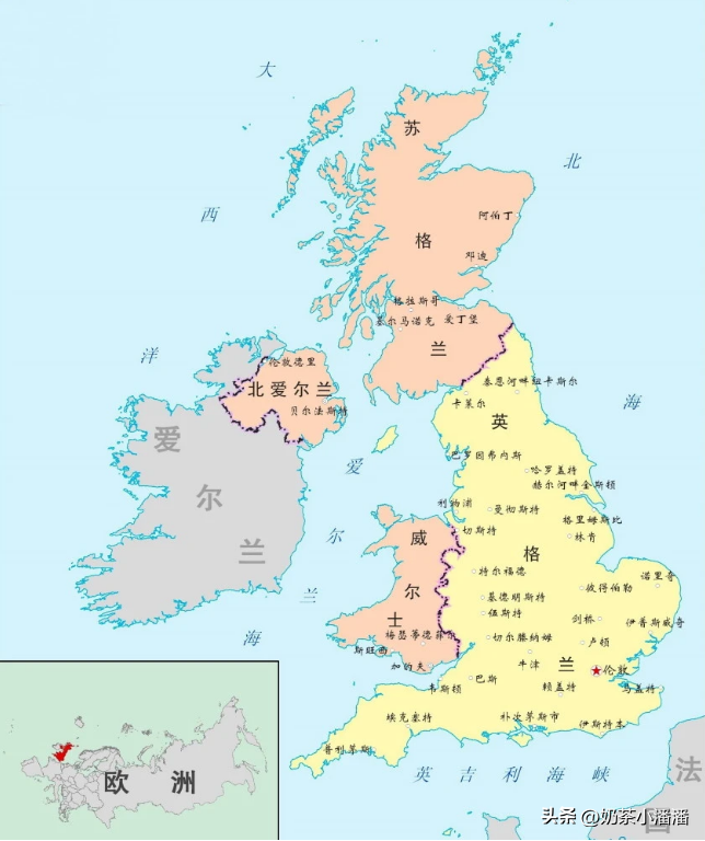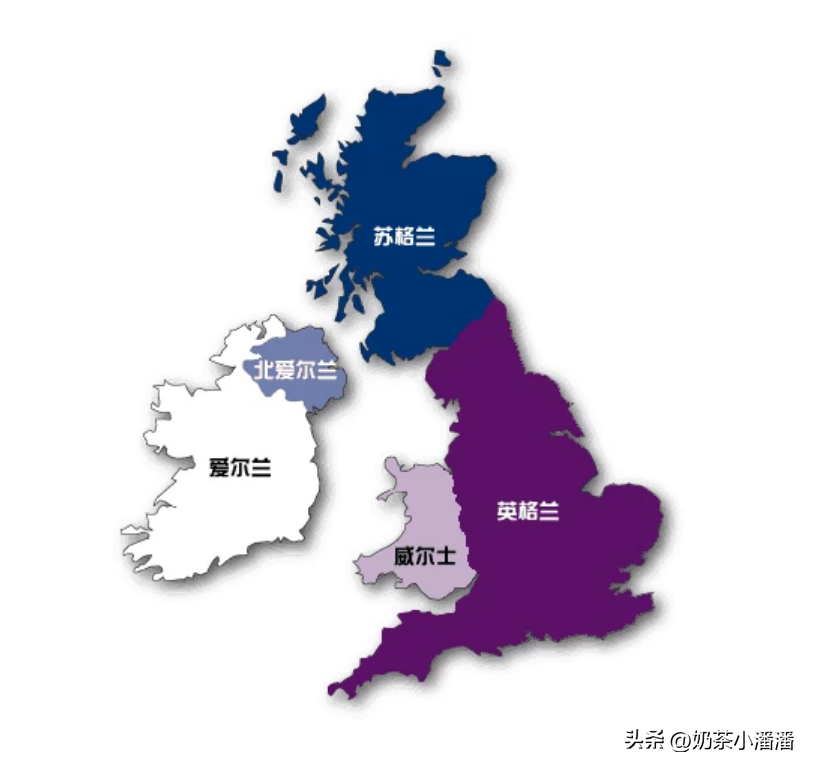 这会让人挠头,因为从地理上看,英国的本土只有一个半岛屿:不列颠岛的全部、爱尔兰岛的一部分即北爱尔兰。