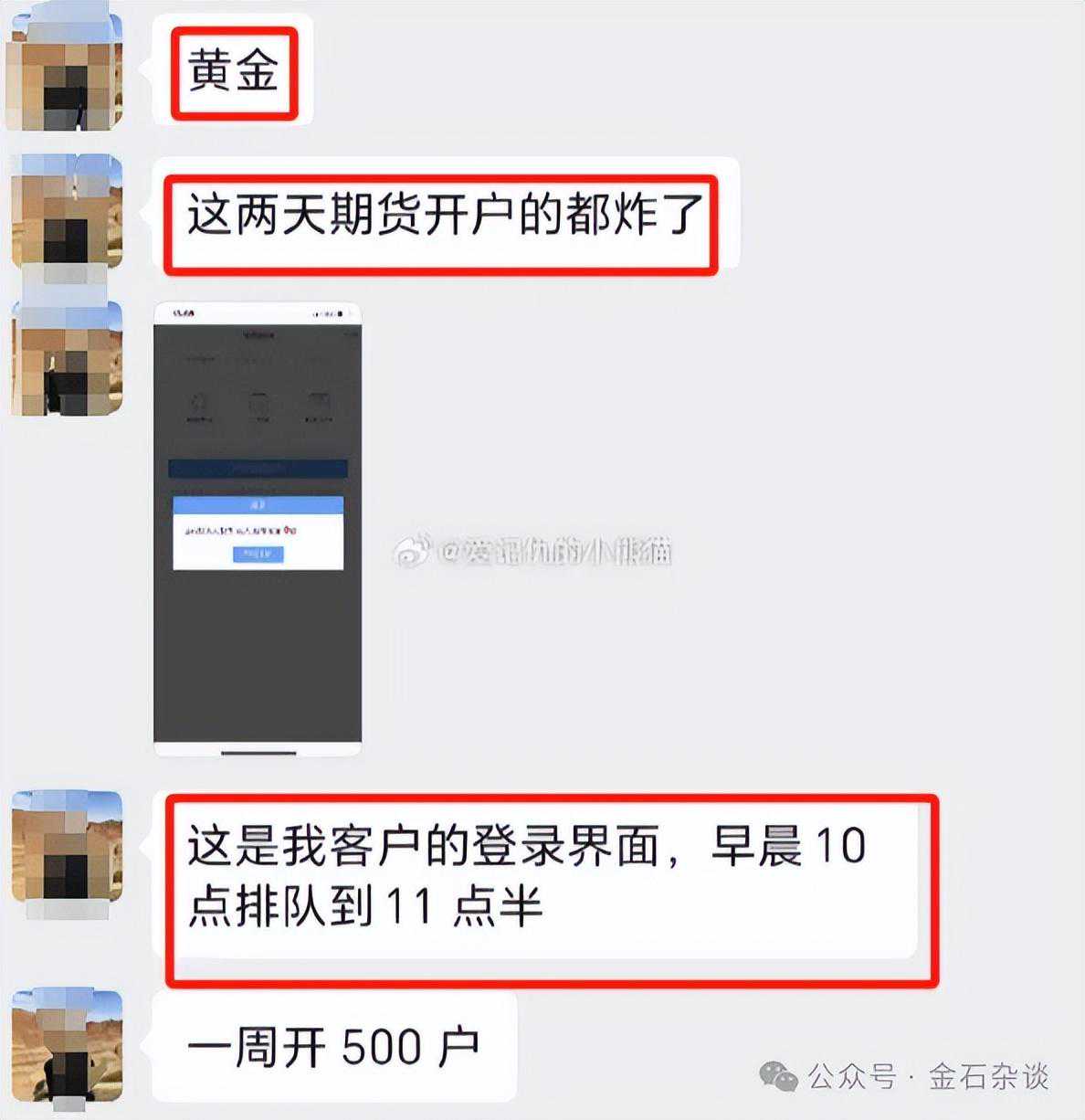 正是这种超强通胀预期之下,资本市场都在炒大宗,黄金飙升至2330美元,金饰突破720元。这两天甚至传出一张截图:期货开户的都炸了,登录界面登不上,直接早晨10点排队开户到11点30分。