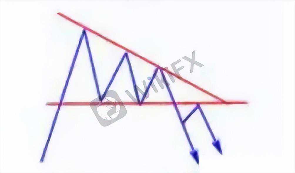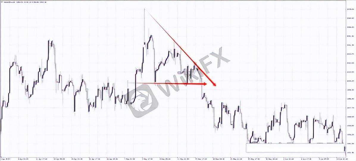 下降三角形,则说明下方存在关键颈线支撑,但是空方不断打压多头,破位下跌可能性大。