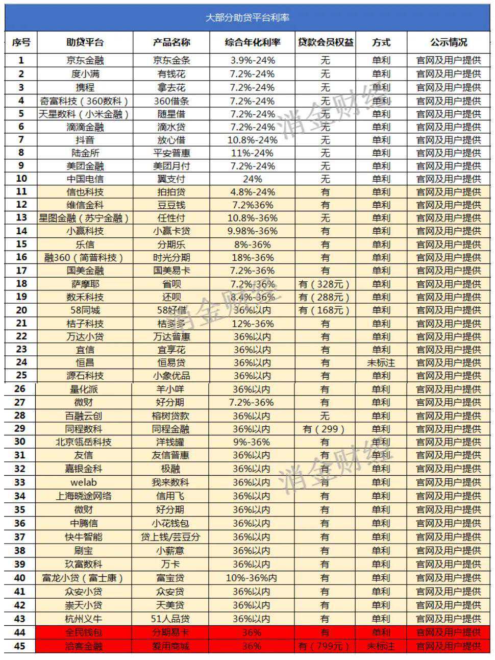 从持牌机构公布的利率以及头部助贷平台的利率来看,大部分都已经控制在了24%以内,腰部以下助贷平台还存在少部分36%的产品,也有个别平台采用会员费的形式来进行包装费用,综合超过36%以上,今天《消金财经》就给大家来盘点下各家助贷平台的利率情况。