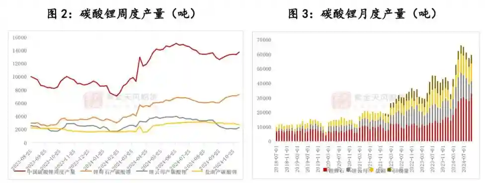月度产量方面,11月产量预计达63315吨,环比增3650吨、+6.1%,其中,其中辉石产、云母产、盐湖产、回收产碳酸锂分别+2800、+870、-420、+400吨至35650、9830、11510、6325吨(SMM)。国内碳酸锂10月产量环比增加2145吨至59665吨,环比增4%,略高于月初预期,其中辉石产、云母产、盐湖产、回收产碳酸锂分别+4700、-2410、-310、+165吨至32850、8960、11930、5925吨(SMM)。
