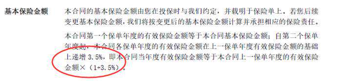 这是某款终身复利3.5的保险产品的保额递增合同约定条款: