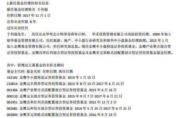 也曾经名噪一时,当然卸任的时候可能只能说留下了一地鸡毛,因为任职期间的业绩排名实在是有些太惨淡,总是倒数前十真得有点太难看了。接替他的于利强,是金鹰基金的研究部总监,过往的业绩平平,不过好在跟同类平均业绩也没差多少,表现还是可以接受的。
